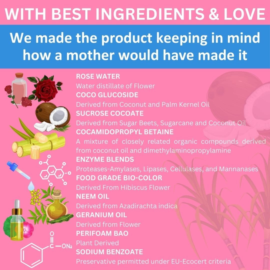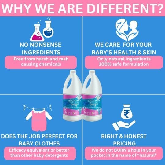 Zimmer Aufraumen Baby Laundry Liquid Detergent is made of Coconut Oil & Sugar Cane Derived Surfactant, having excellent cleaning properties and completely harmless, biodegradable, and the environment safe.